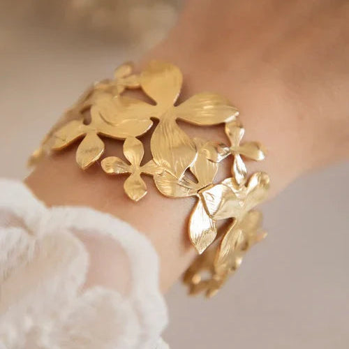 Floral cuff anti tarnish Gold plated Broad Bracelet