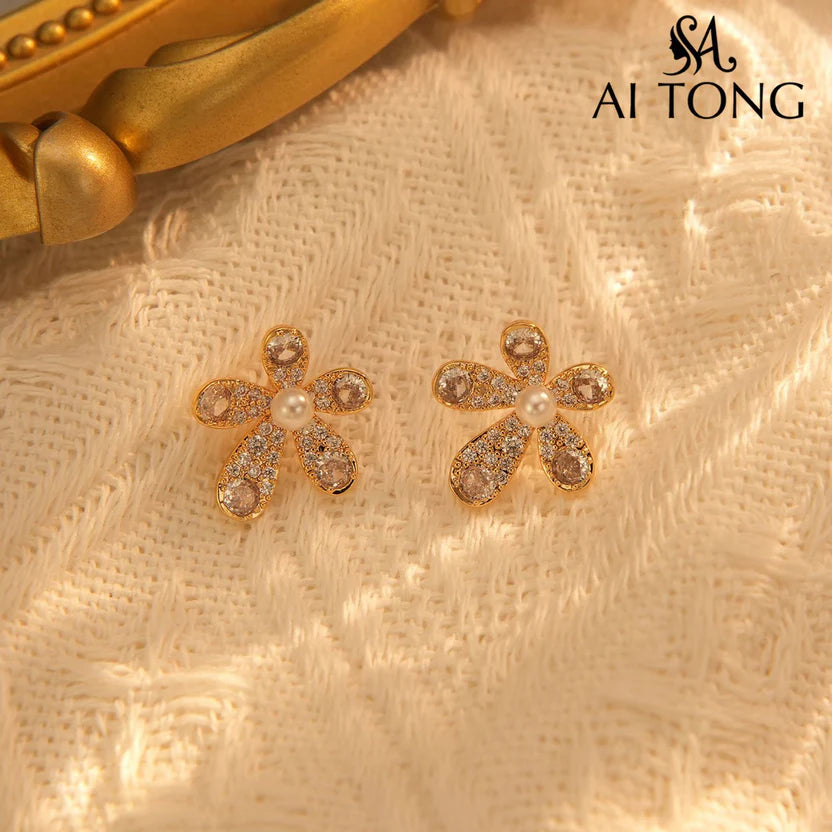 Gold Leaf Bloom Earrings - Anti Tarnish